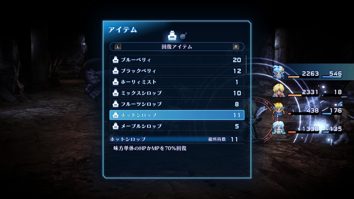 手足が無くなってダルマ状態になったら即、「逃げ回れ」に命令を変えて、攻撃はセリーヌを中心に他は回復に専念しつつ、時々ボム系のアイテムで攻撃したり。