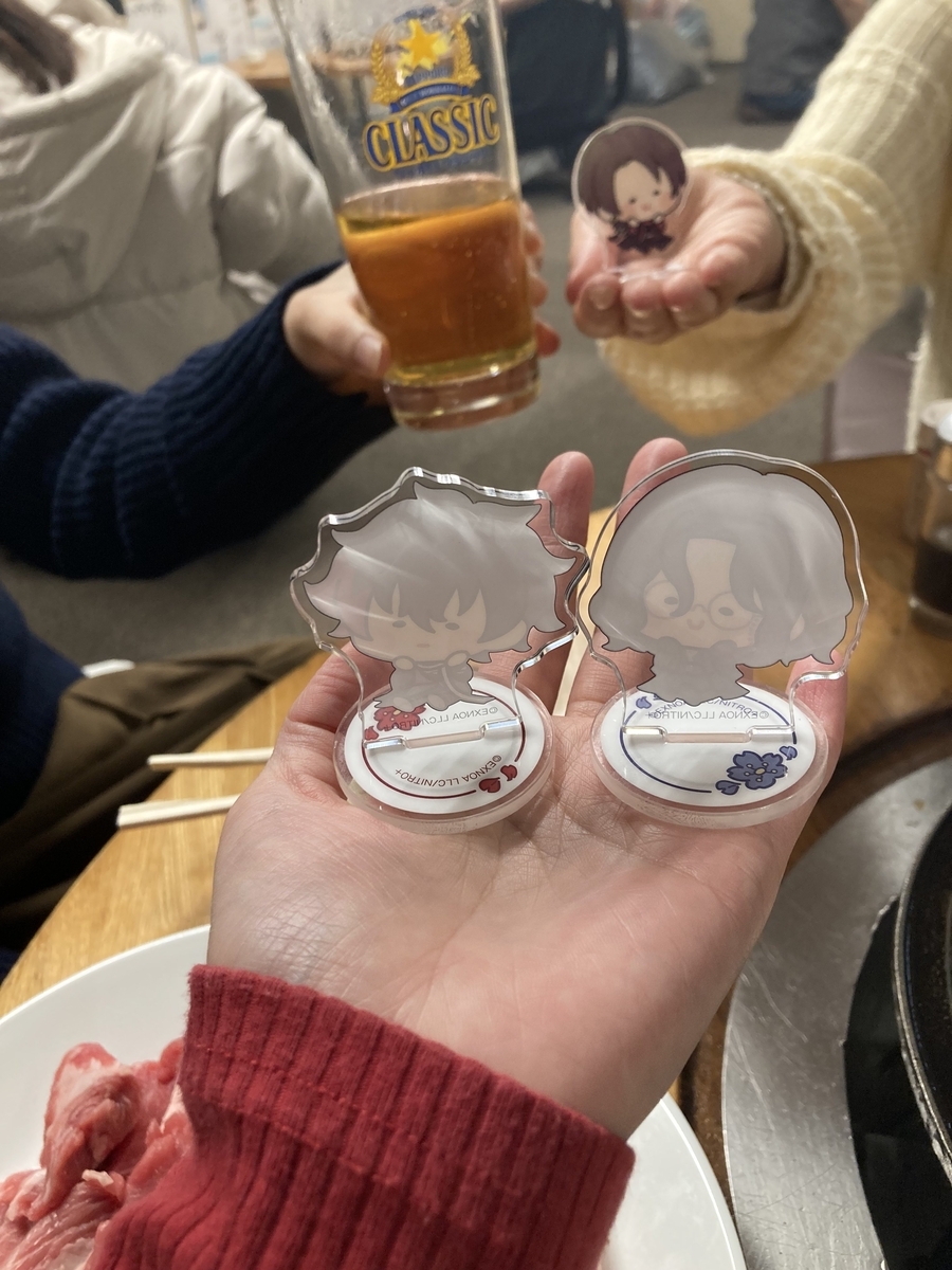 2025-01-26 新年会 雑記・日常 刀剣乱舞 祝玖寿北海道公演の打ち上げのお店にて 先生には見向きもせずに肉が焼けるのを見つめる肥前くん 打ち上げから約三か月ぶり、また来てくれたんだね 肉の赤ちゃん(焦げた脂のすぐそば) お酒と野菜と姫 突然の開封式 出会ったー 諭吉だけが存在しない世界線 五条で鶴だから、ただそれだけ 急遽やって来たシメパフェのお店2度目まして 食べたのはチーズケーキ。 ティラミスガード また開封式してる もう一回開封出来るドン! 本日の戦利品、自引きしたやつ 貰ったやつ 何故か揃うぶんとさ